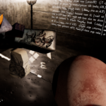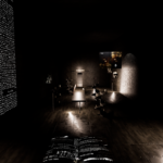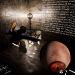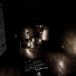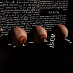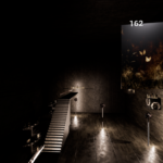 An austere and enormous modern library with no exits, but with stairs that lead to nowhere. Fragments of 19th century archives are projected on the walls. To gather a higher score, the user is presented with two possibilities: either to throw eyeballs on books, or to shoot at them with a gun. Every shot triggers random sounds of a woman’s howl, a baby’s laugh or a baby’s cry.